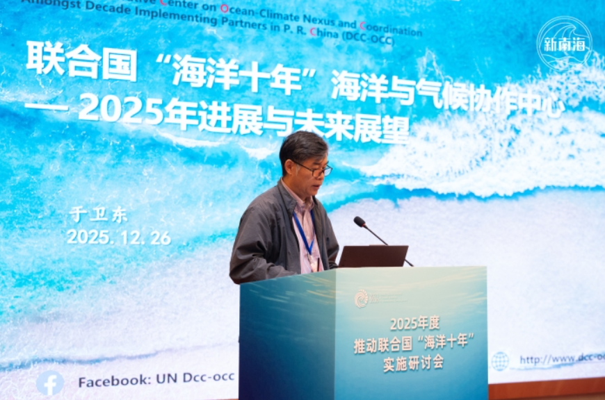 From December 26 to 27, the 2025 Workshop on Promoting the Implementation of the Ocean Decade was successfully convened in Guangzhou. Under the theme of "Strengthening the science–policy interface to empower the Ocean Decade," the workshop provided a systematic exchange on the latest progress and representative achievements of China's actions under the Ocean Decade. It also organized thematic discussions on science-based decision-making support, cross-sectoral cooperation, and resource mobilization, helping to build consensus and strengthen momentum for China's sustained and in-depth engagement in the Ocean Decade.
